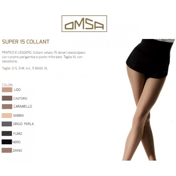 10 PAIA COLLANT OMSA SUPER 15 COLLANT VELATO 15 DENARI ELASTICIZZATO CON CORPINO PARIGAMBA E PUNTE RINFORZATE COLORI DISPONIBILI: SABBIA, CARAMELLO, LIDO, DAINO, CASTORO, GRIGIO PERLA, FUMO, NERO, BLU. TAGLIE DISPONIBILI: 2/S 3/M 4/L 5/MAXI QUALITA’ OMSA