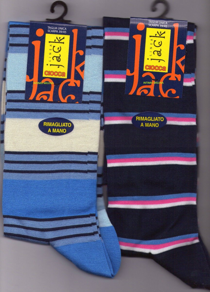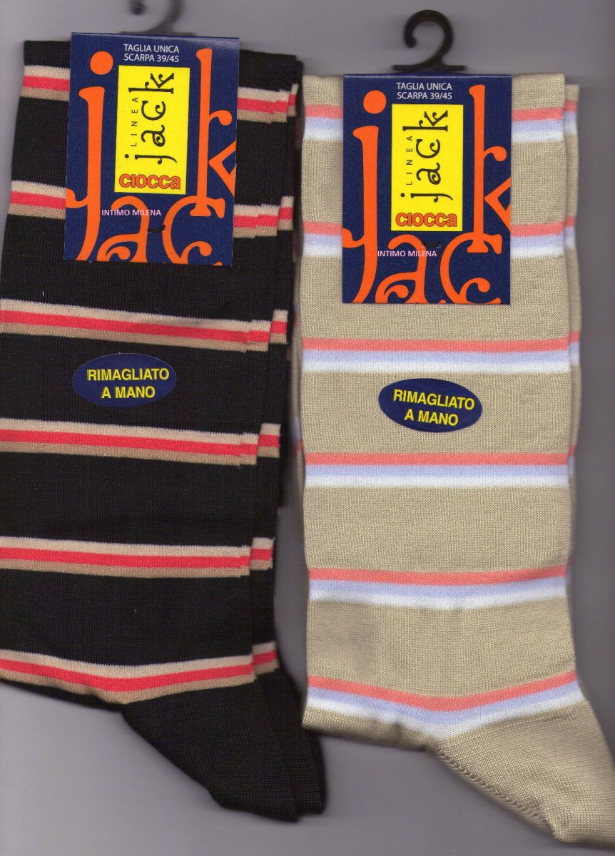 12 CALZE UOMO CIOCCA ART. 906X CALZA UOMO LUNGA RIGATA IN COTONE ESTIVO RIMAGLIATA A MANO IN TAGLIA UNICA 39-45 COLORI ASSORTITI COME IN FOTO COMPOSIZIONE DEL PRODOTTO: 70% COTONE 29% POLIAMMIDE 1% ELASTAN