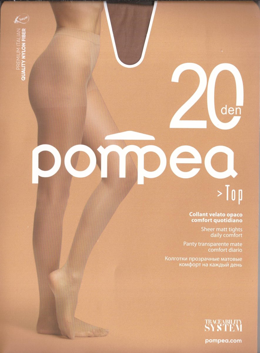 12 PAIA COLLANT POMPEA ART. TOP 20 COLLANT 20 DEN ELASTICIZZATO, OPACO, IDEALE PER TUTTI I GIORNI, CON CORPINO E CINTURINO CONFORTEVOLI COMPOSIZIONE PRODOTTO: 89% POLIAMMIDE 11% ELASTAN TAGLIE DISPONIBILI: 1/2 – 3 – 4 – XL COLORI DISPONIBILI: NERO,CREME CARAMEL,SMOKE QUALITA’ POMPEA