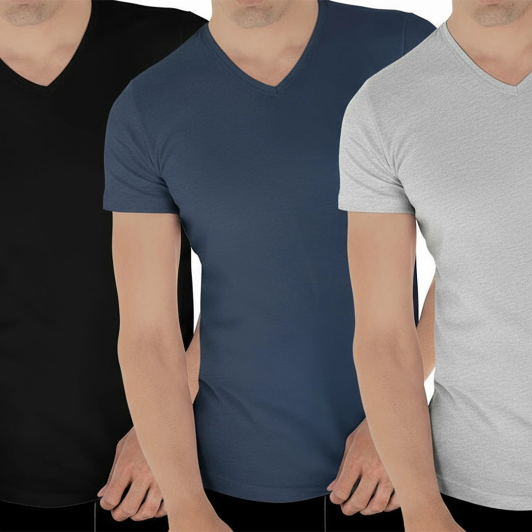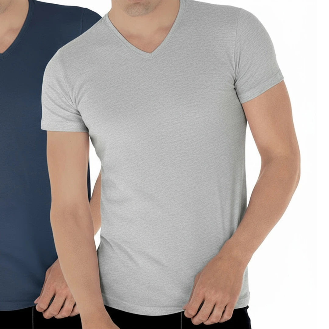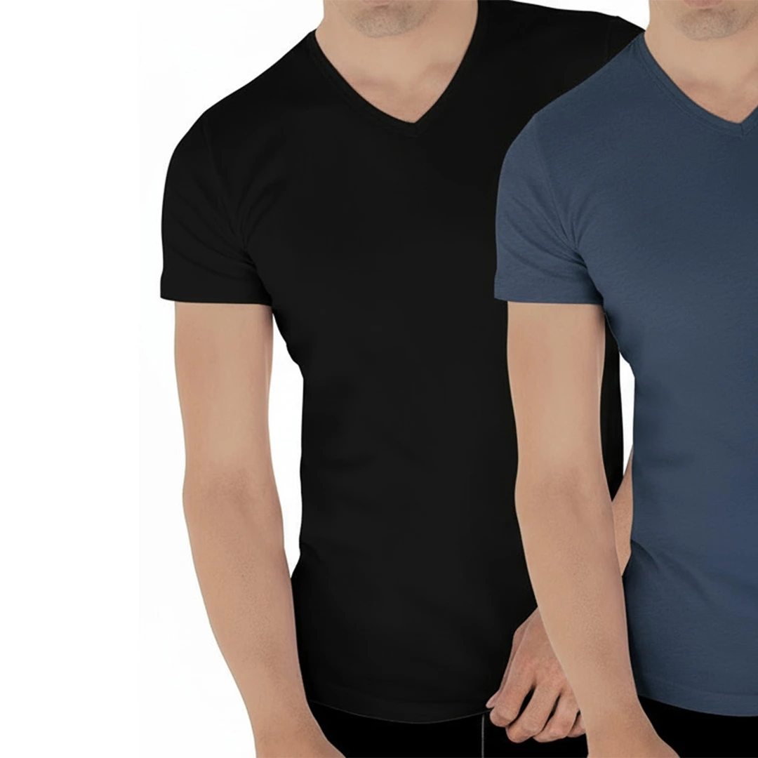 2 maglie uomo scollo V in morbido cotone jersey, perfette per un look semplice, confortevole e traspirante.
