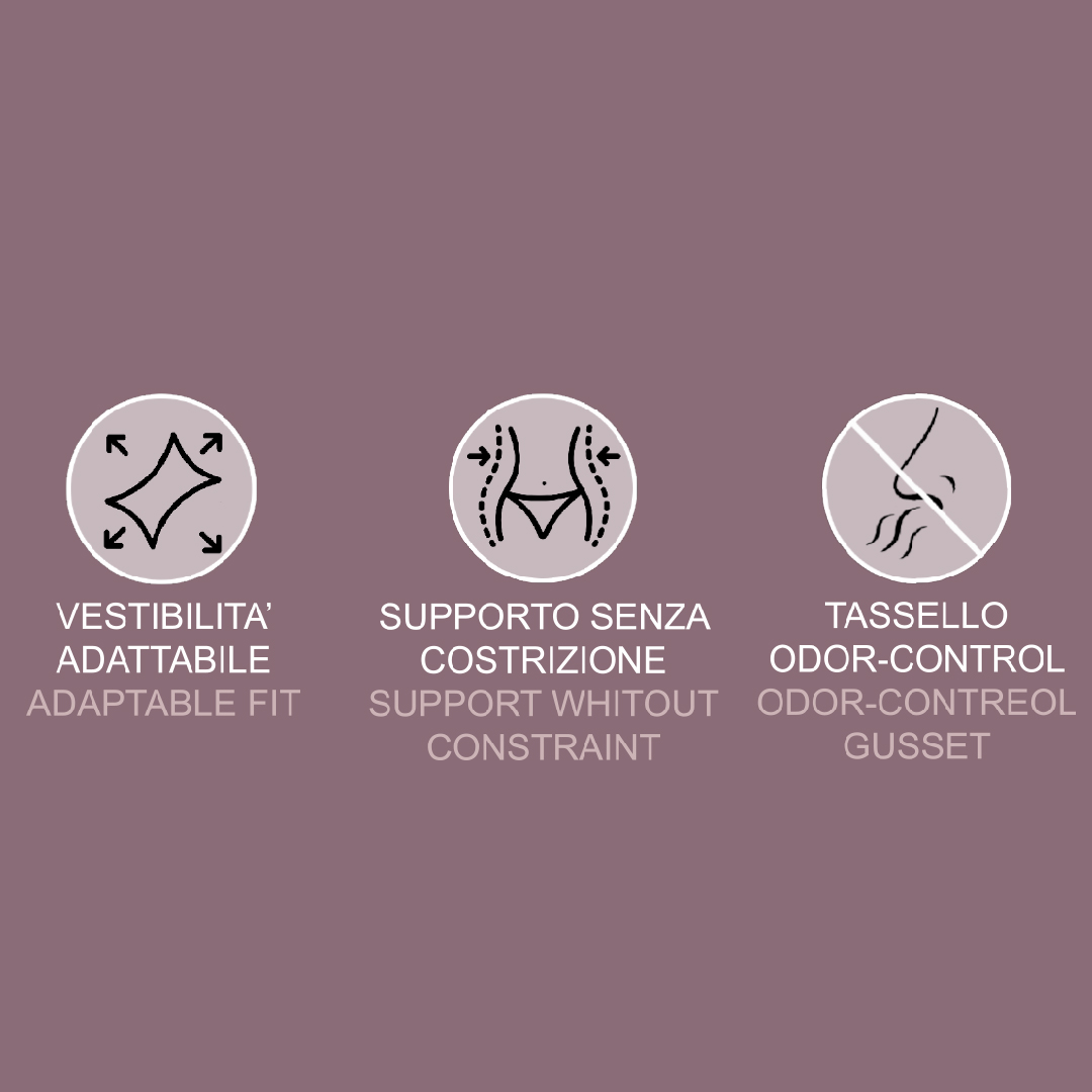 Grazie al sistema di supporto nella zona addominale e al design senza cuciture, offrono una vestibilità perfetta e discreta, invisibile sotto i vestiti.