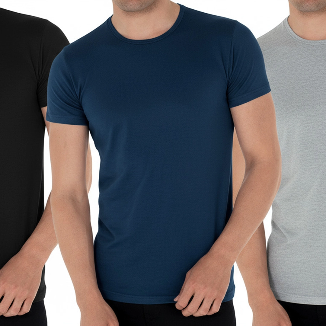 Queste t-shirt girocollo da uomo in cotone bielastico uniscono morbidezza e resistenza, garantendo libertà di movimento e una vestibilità impeccabile. Il profilo collo basso dona un look moderno e pulito, rendendole ideali sia come capo intimo sia come maglia base sotto giacche e maglioni.