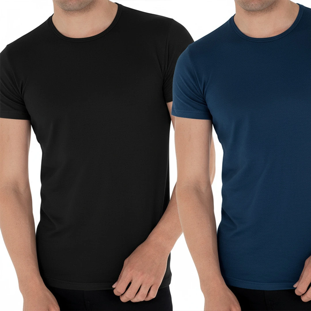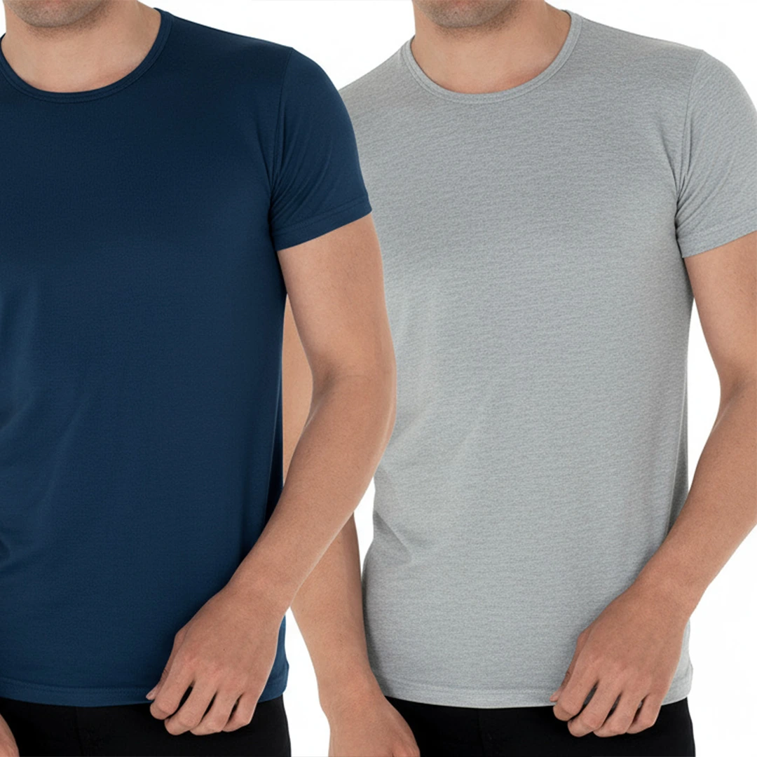 2 t-shirt uomo girocollo in cotone bielastico con profilo collo basso, perfette per comfort e stile quotidiano.