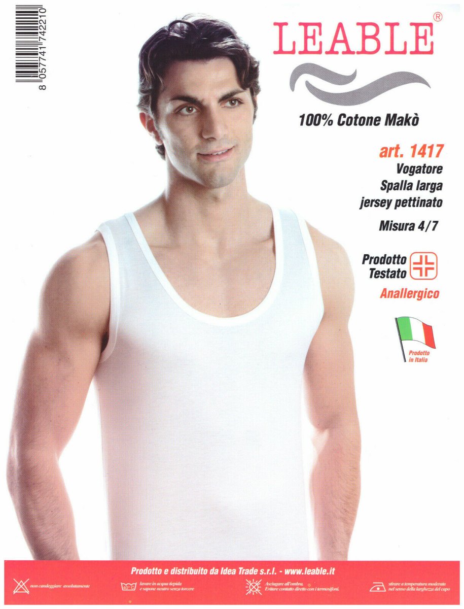 3 CANOTTE UOMO LEABLE ART. 1417 CANOTTA A SPALLA LARGA IN COTONE 100% MAKO’