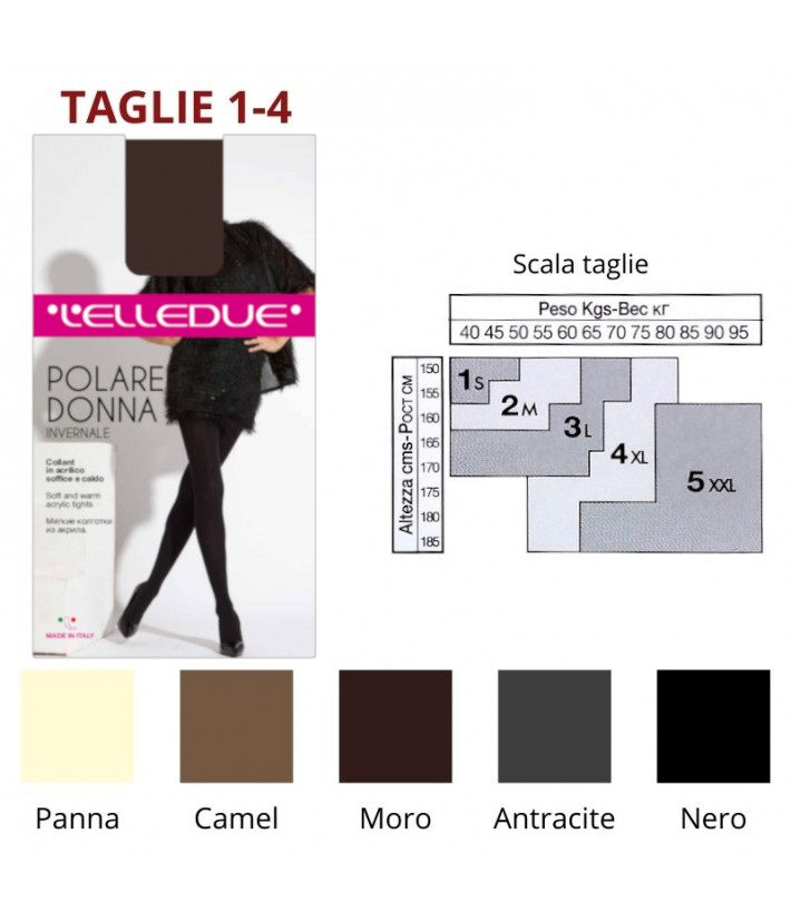 3 COLLANT ELLEDUE POLARE CON CUCITURA PIATTA E TASSELLINO PUNTA NUDA COLLANT IN LANA ACRILICA EFFETTO SOFT MORBIDA E COPRENTE. TAGLIE DISPONIBILI: SECONDA – TERZA – QUARTA COLORI DISPONIBILI: NERO,CAMEL,MORO, QUALITA’ ELLEDUE
