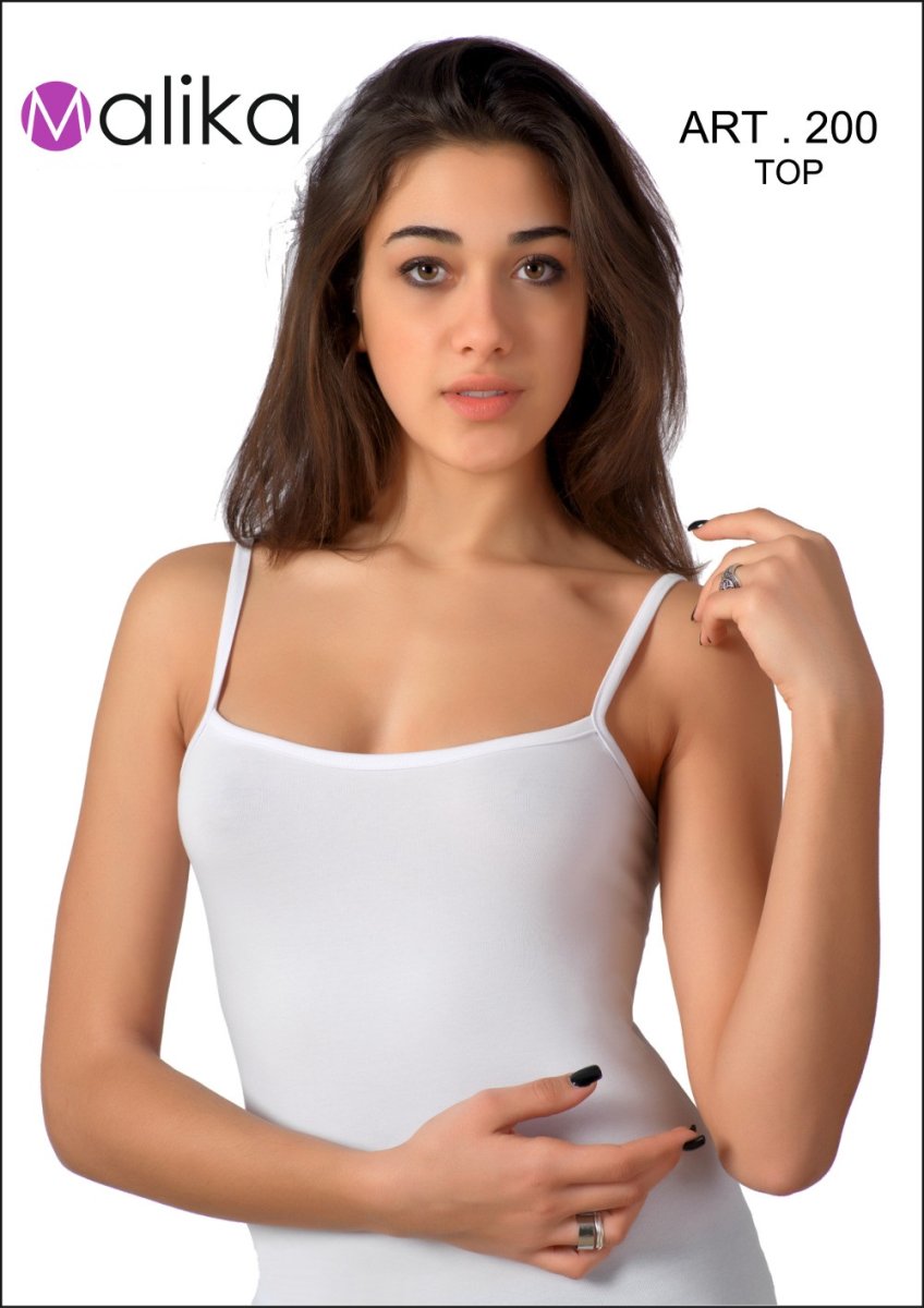 3 CANOTTIERE TOP DONNA MALIKA ART. 200 CANOTTA DONNA CON SPALLINE SOTTILI CON BORDO LISCIO IN COTONE BIELASTICO IN TINTA UNITA TAGLIE DISPONIBILI: S-M-L-XL COLORI DISPONIBILI: BIANCO-NERO-NUDO QUALITA’ DAFNE