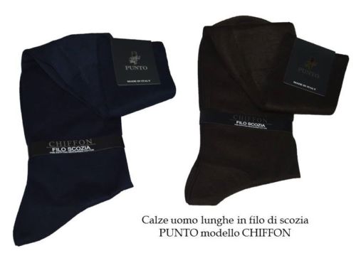 6 PAIA CALZA UOMO LUNGA PUNTO MODELLO CHIFFON 100% COTONE FILO DI SCOZIA