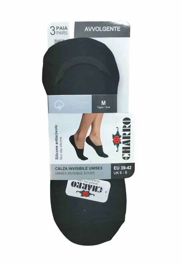 6 PAIA SALVAPIEDE ANTISCIVOLO MINI CALZA SANETTA CHARRO AVVOLGENTE SOTTOPIEDE UOMO DONNA IN COTONE COMODO, PRATICO ED OTTIMA VESTIBILITA’ IDEALE PER LA QUOTIDIANITA’ TAGLIE DISPONIBILI: 35-38 39-42 43-46 COLORI DISPONIBILI: NERO – BLU – BIANCO-NUDO QUALITA’ CHARRO