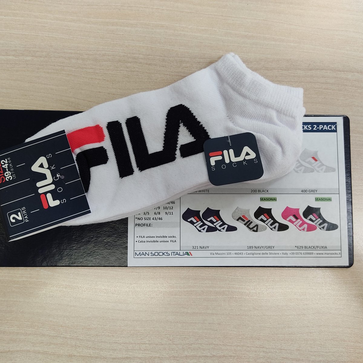 Calzino sneaker Fila unisex in cotone. Logo grande sulla pianta Confezione da 2 paia. Composizione: CO75 PL23 EA2