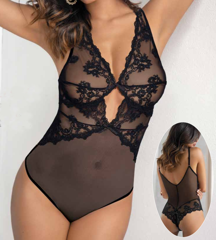Body senza ferretto in tulle preziosamente ricamato. Composizione: PL50 PA45 EA5