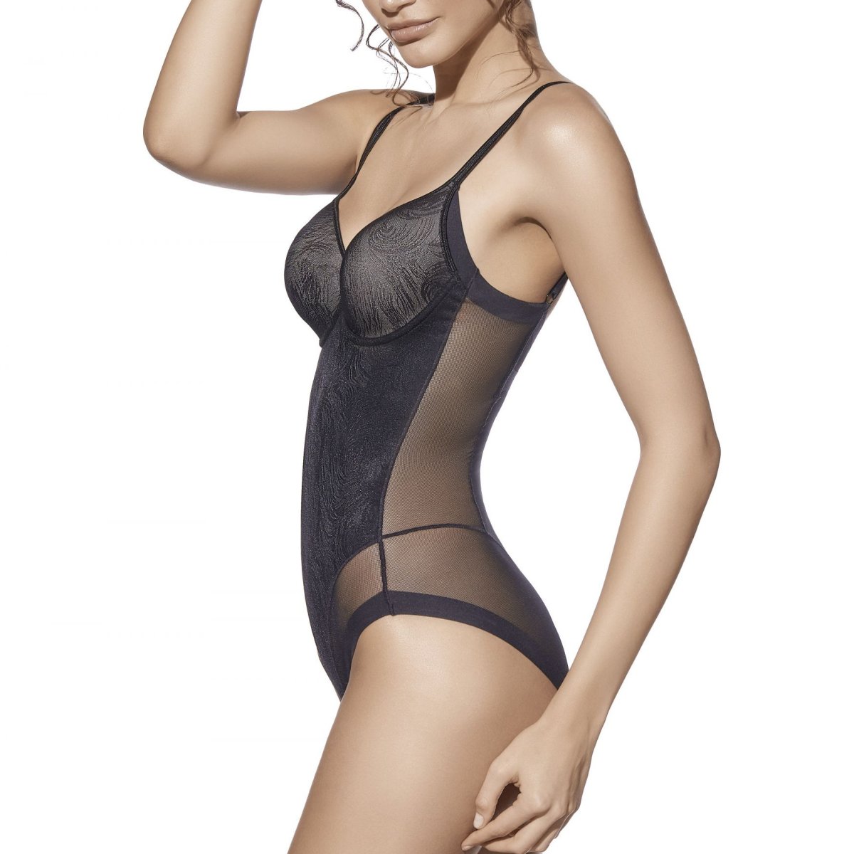 Body donna in microfibra con inserti in tulle operato.coppa C Composizione: PA68 PL17 EA15