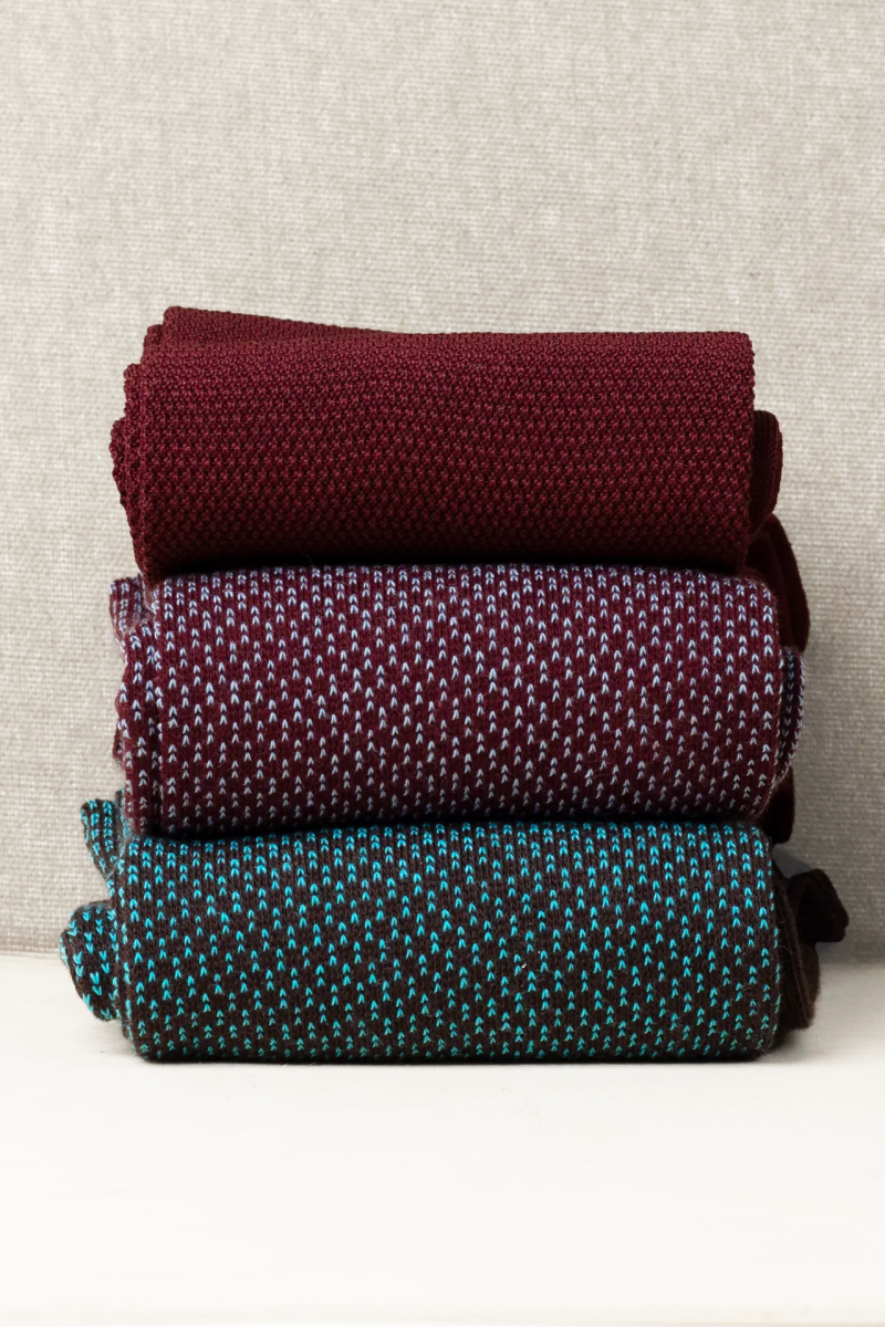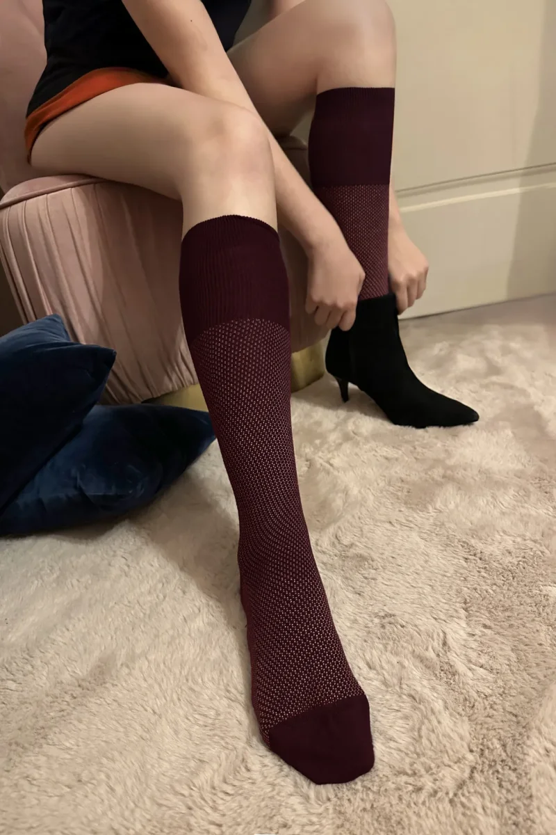 Box da N.3 Calze Donna LUNGHE Grana Blu Notte&Bordeaux Filati Misti con o Senza Iniziali!