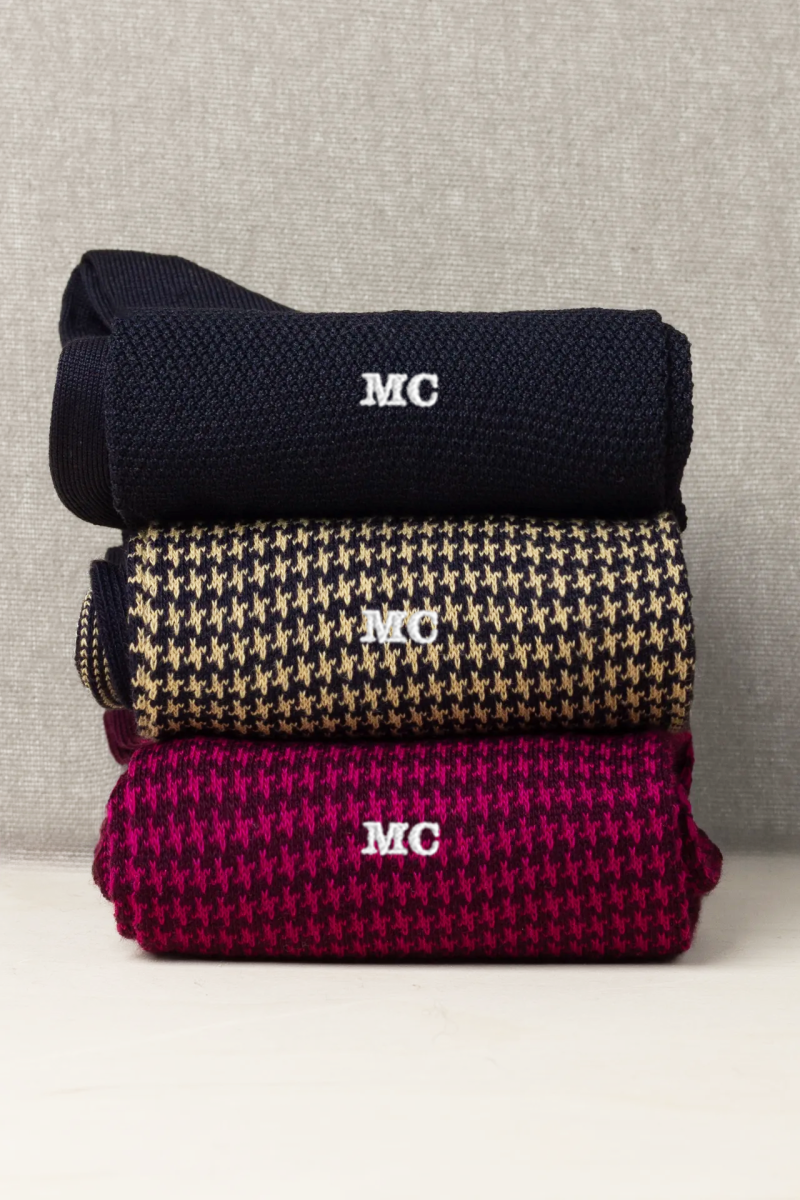 Box da N.3 Calze Donna LUNGHE Grana Blu Notte&Bordeaux Filati Misti con o Senza Iniziali!