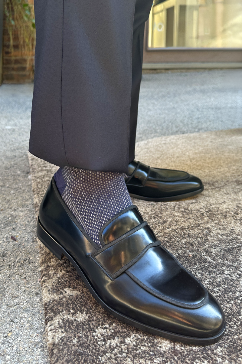 Trittico di Calze dai Filati Caldi Made in Italy (2 Paia di Calze Jacquard in Cotone Pettinato+ 1 Paio Lana) realizzate su macchine tradizionali 200 aghi. Perfette per avvolgere i piedi in Comfort, Qualità e Stile, che potrai personalizzare con le Tue Iniziali.