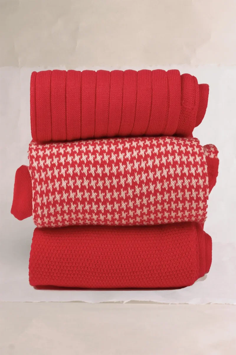 Trittico di Calze da Uomo dai Filati Naturali Pregiati per gli amanti del Colore Rosso.