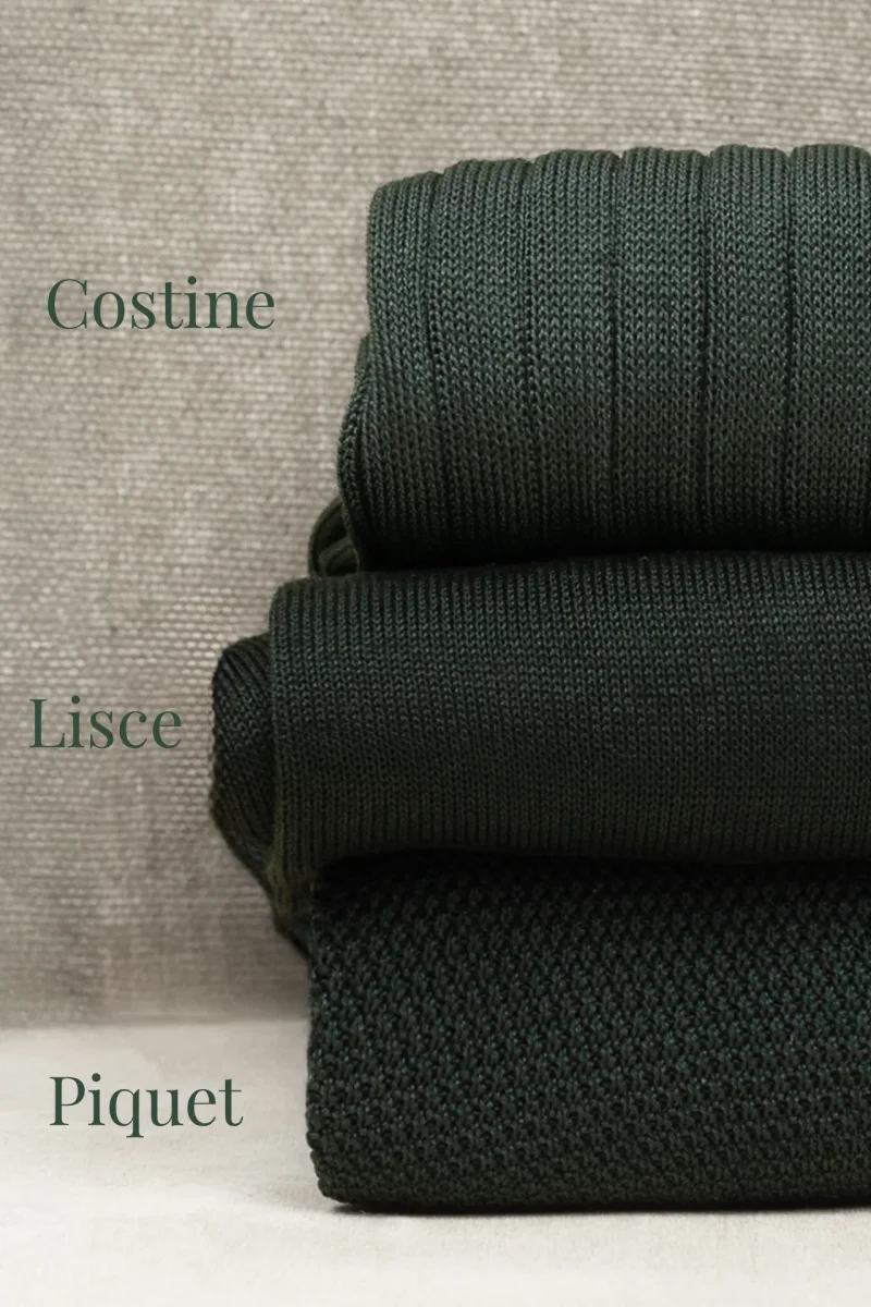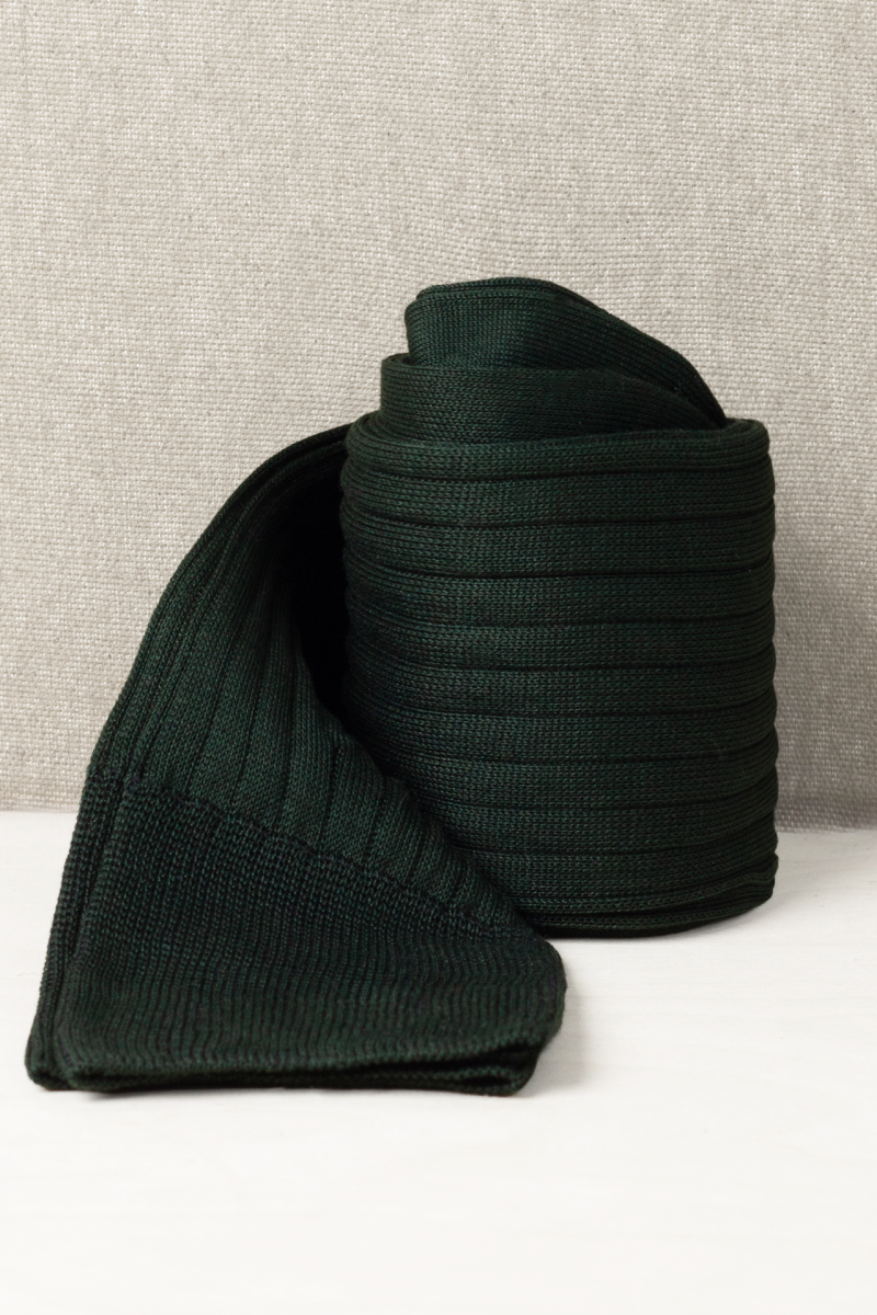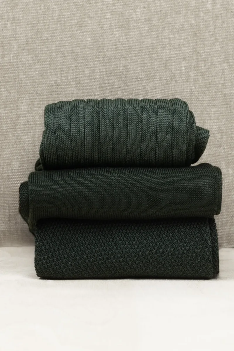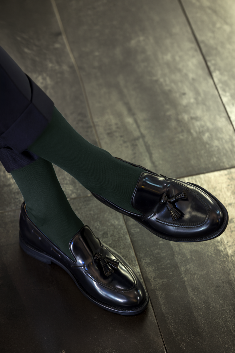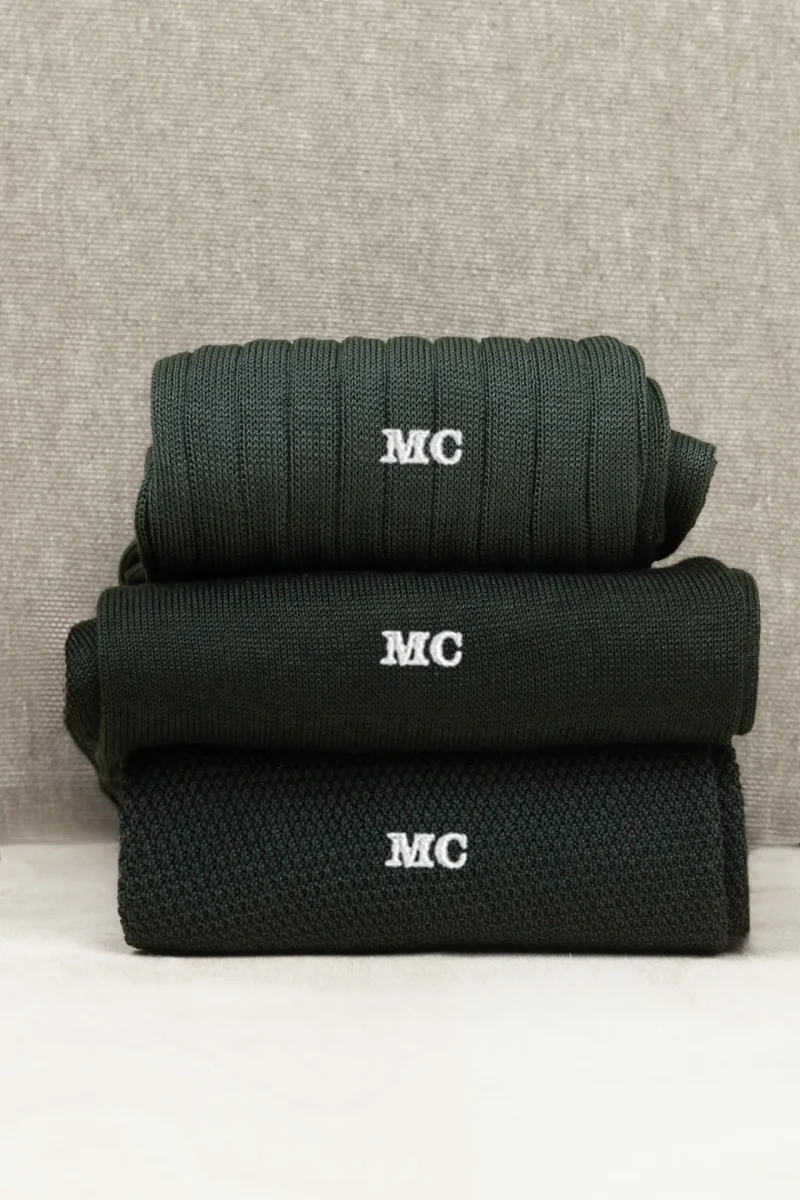Trittico di Calze da Uomo in Pregiato Filo di Scozia in Verde Scuro, che potrete personalizzare anche con un filo del Ricamo a contrasto e a scelta.