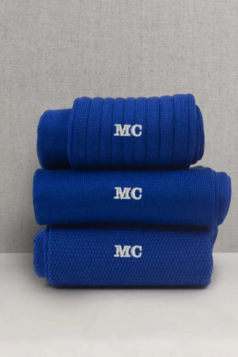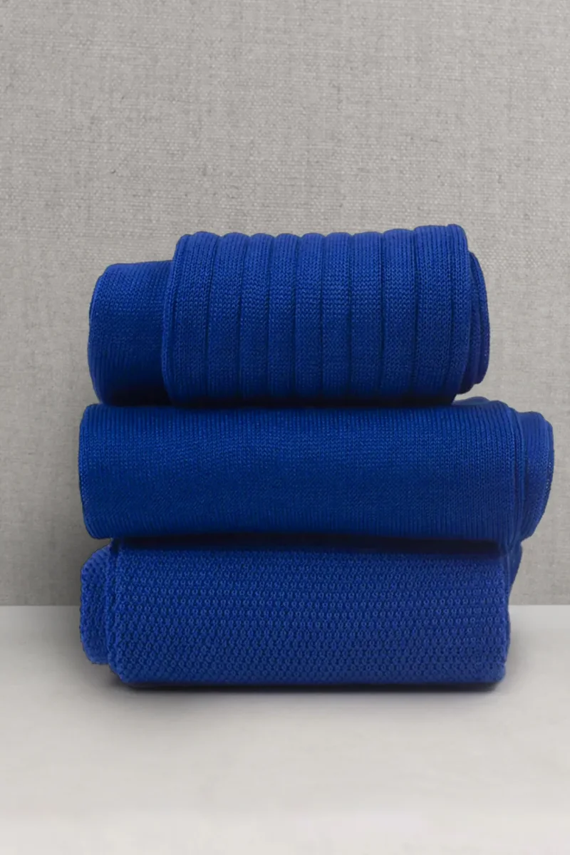 Box da N.3 Calze Lunghe in Filo di Scozia Blu Royal in 3 Lavorazioni diverse