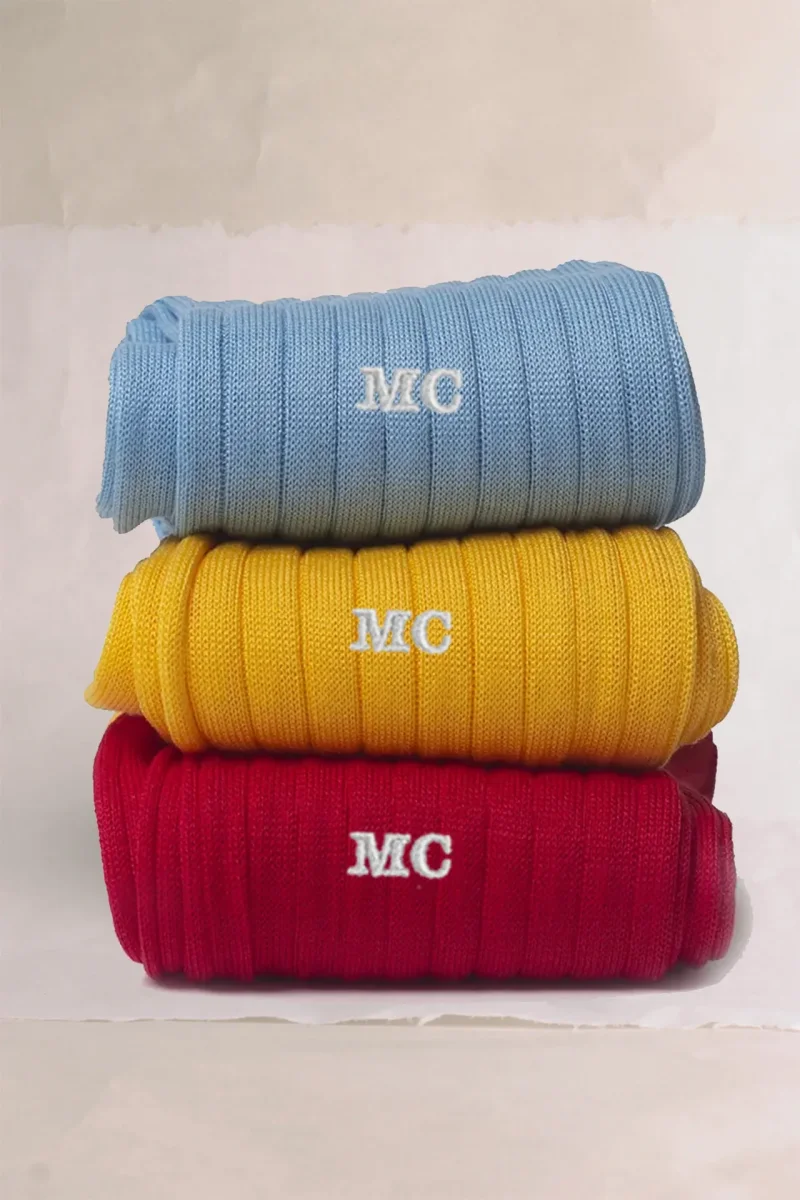 Trittico di Calze da Uomo in Pregiato Filo di Scozia a COSTINE, adatto a chi ama i Colori vivaci di una giornata di Sole. Potrete personalizzarle o con le Vostre Iniziali scegliendo il colore del Ricamo o apportare variazioni sulla scelta della calza presente nel box.