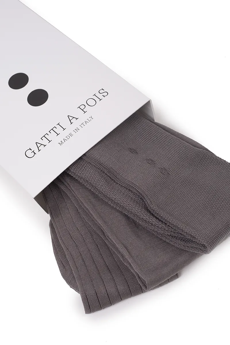 Box da N.3 Calze Lunghe in Filo di Scozia Grigio Medio in 3 Lavorazioni diverse