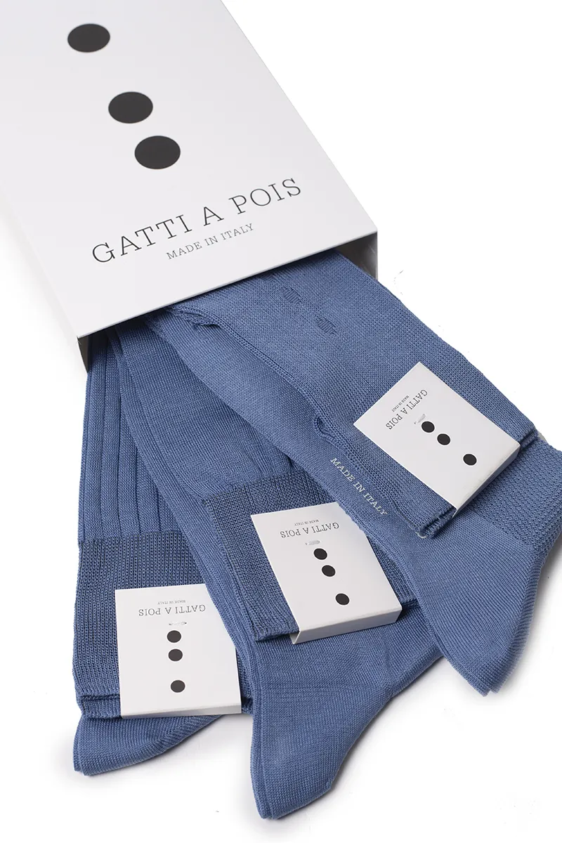 Box da N.3 Calze Lunghe in Filo di Scozia Jeans in 3 Lavorazioni diverse