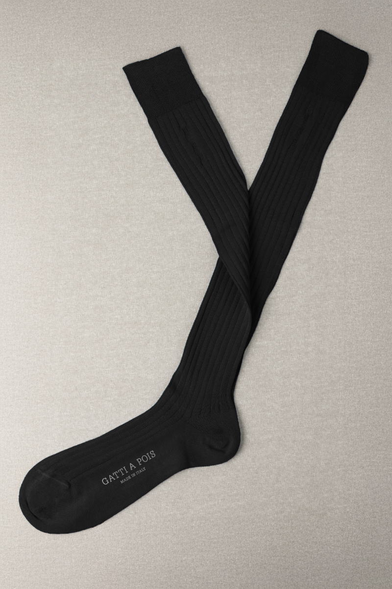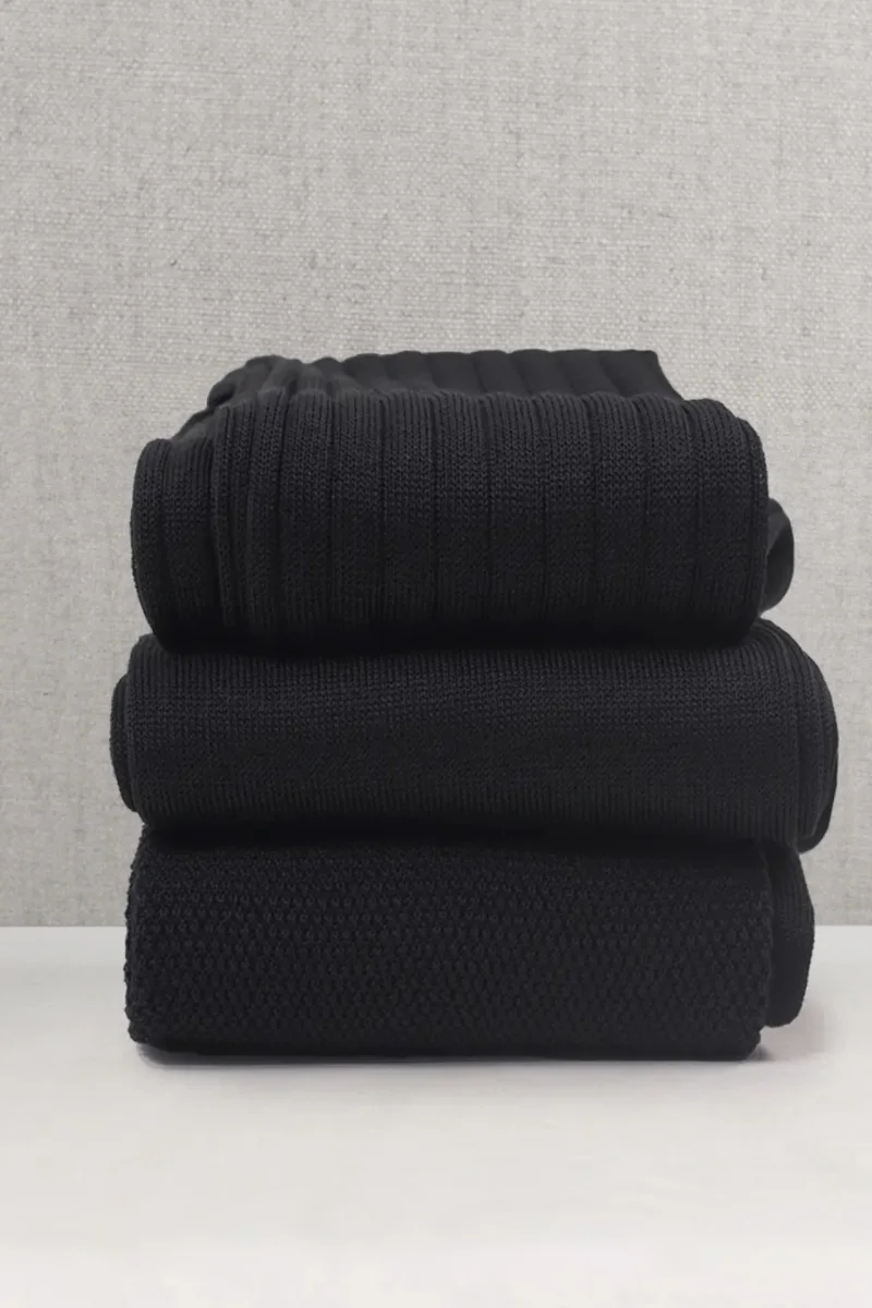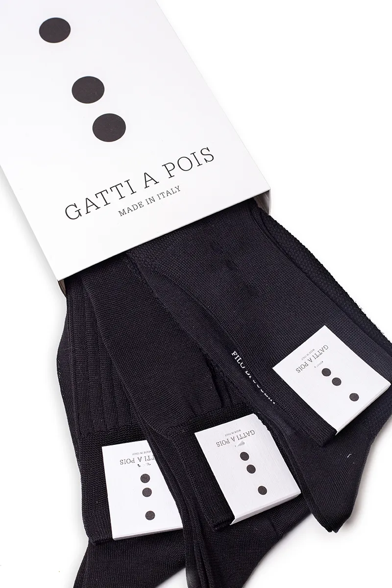 Box da N.3 Calze Lunghe in Filo di Scozia Nero in 3 Lavorazioni diverse