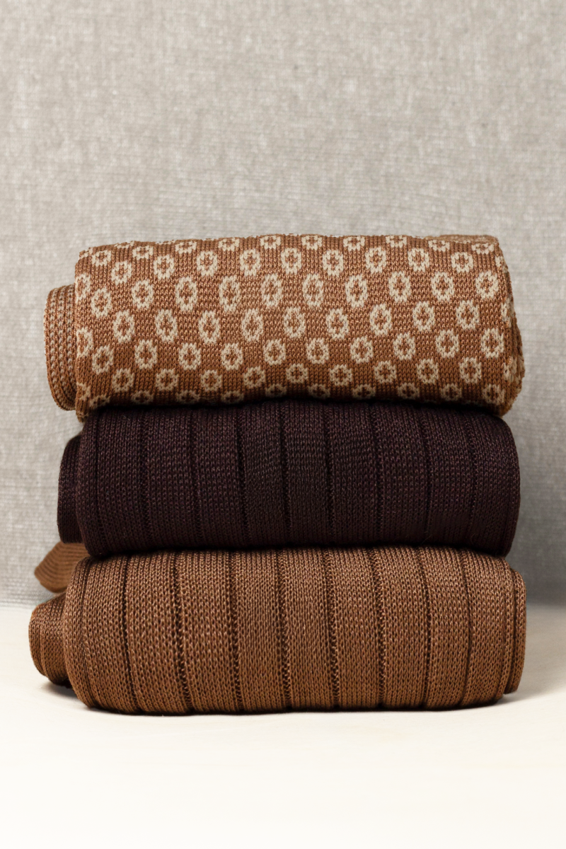 Box da N.3 Calze Lunghe Microbolle Tonalità di Marrone in Filo di Scozia con Iniziali o Senza!