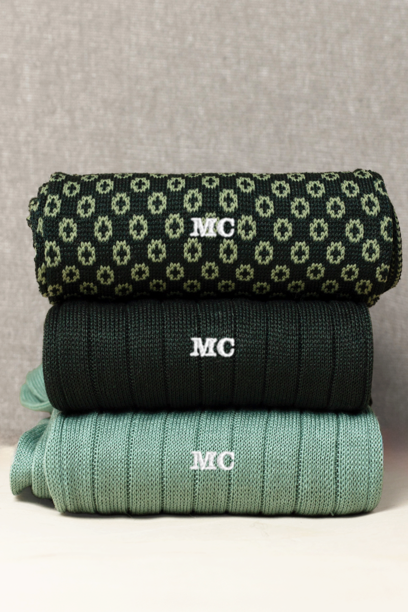 Box da N.3 Calze Lunghe Microbolle Tonalità di Verde in Filo di Scozia con Iniziali o Senza!