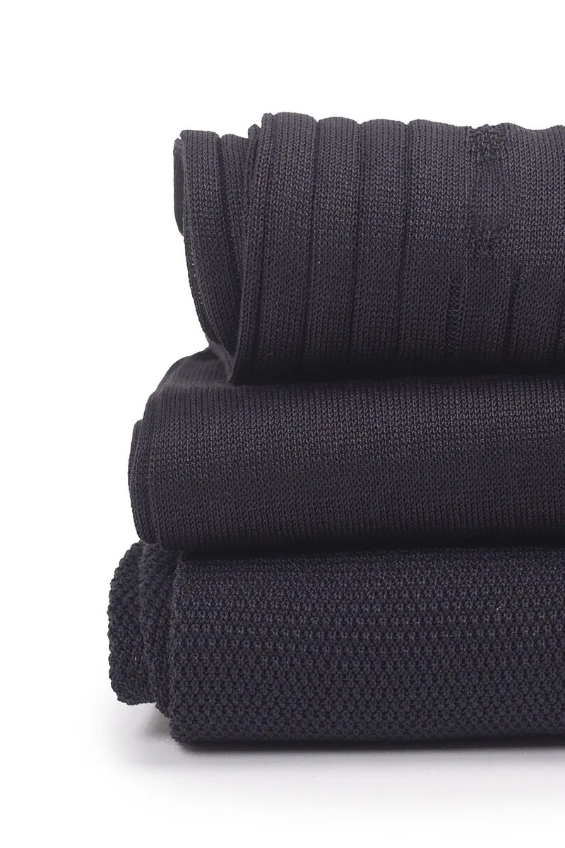 Box da N.3 Calze Mezzagamba in Filo di Scozia Antracite in 3 Lavorazioni diverse