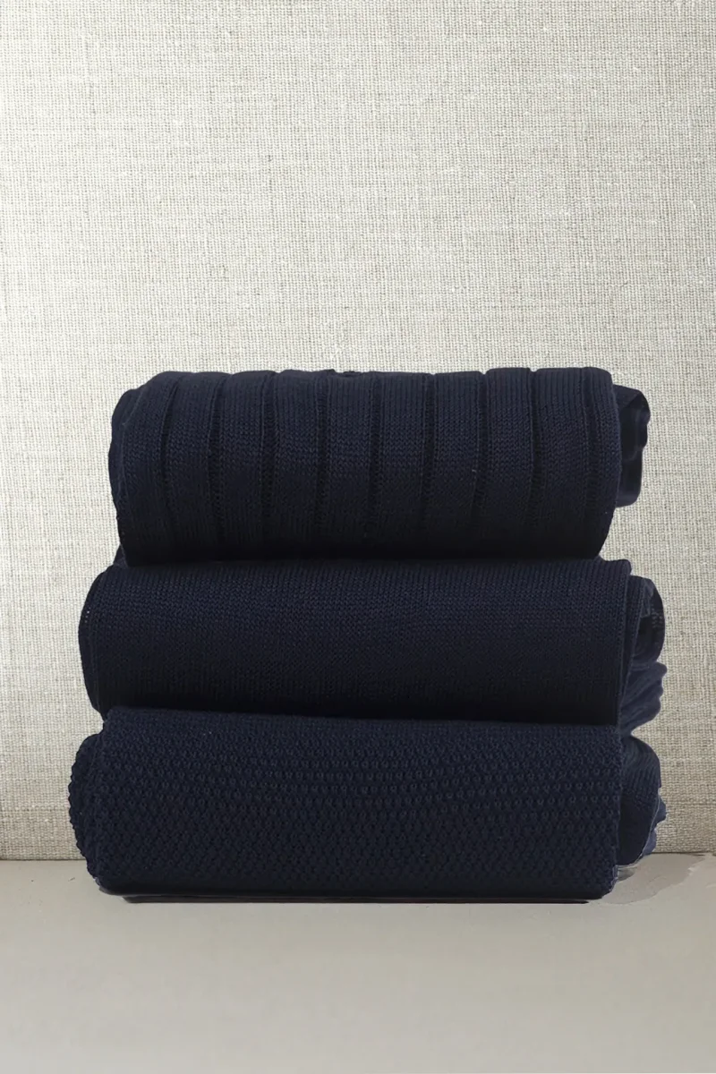 Box da N.3 Calze Mezzagamba in Filo di Scozia Blu Notte in 3 Lavorazioni diverse con Iniziali o Senza!
