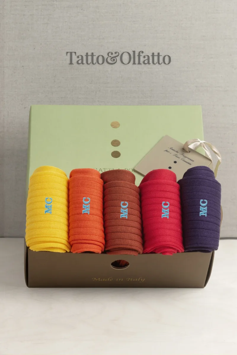Box da N.5 Calze Donna Lunghe Colori Caldi in Filo di Scozia con Fragranza Floreale Speziata con Iniziali o Senza!