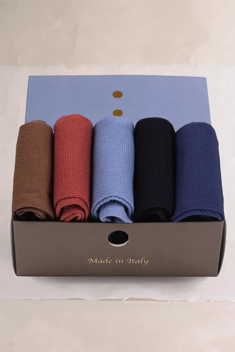 Per gli Uomini un pò sofisticati questo Box composto da N. 5 Paia di Calze da Uomo in Puro Filo di Scozia a lavorazione Piquet, sarà perfetto. Calze di altri tempi, molto rare da trovare in commercio, particolari e uniche ma sopratutto di Qualità altissima