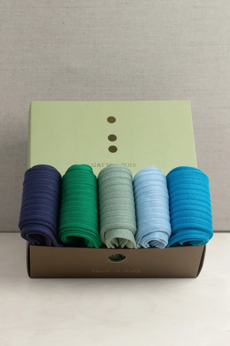 Box da N. 5 Paia di Calze Gambaletto da Donna in puro Filo di Scozia con Iniziali Ricamate o Senza! Per chi ama Comfort ed Eleganza, Il Filo di Scozia con cui realizziamo le nostre Calze, sarà la Soluzione ideale. I Colori contenuti nel Box sono i seguenti: Uva, Verde Felce, Verde Salvia, Bluette, Cielo (possibile richiedere fino a due sostituzioni nel Box a scelta tra i modelli Calze Donna) COMPOSIZIONE: 100% Filo di Scozia Scatola Regalo a Cassetto in Cartoncino Rigido 600gr, ottima per tenere in ordine le vostre cassettiere ed organizzare gli spazi Potrete inoltre decidere se acquistarle…