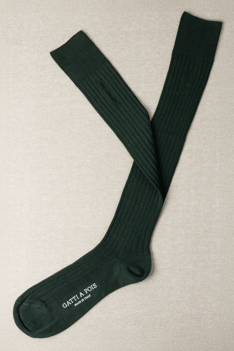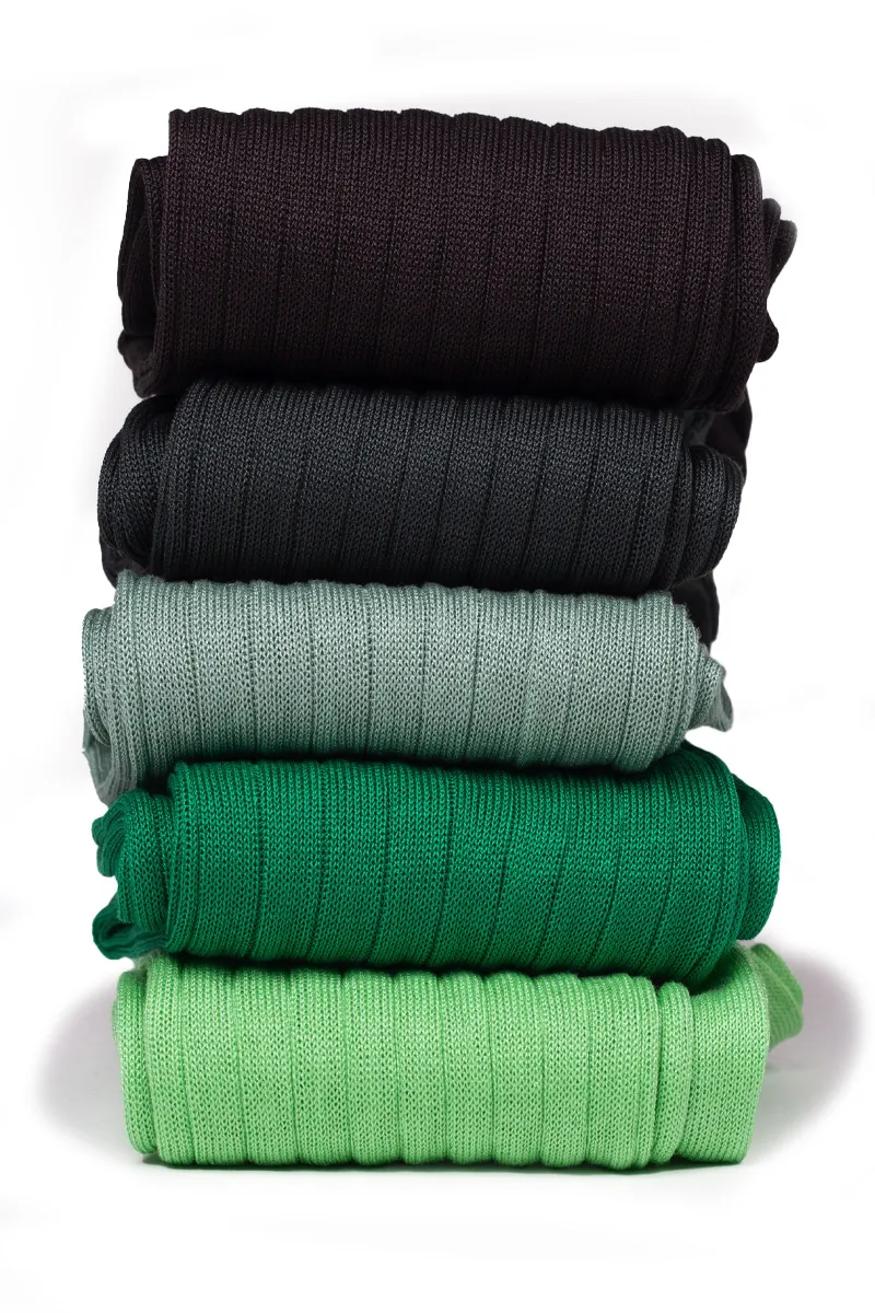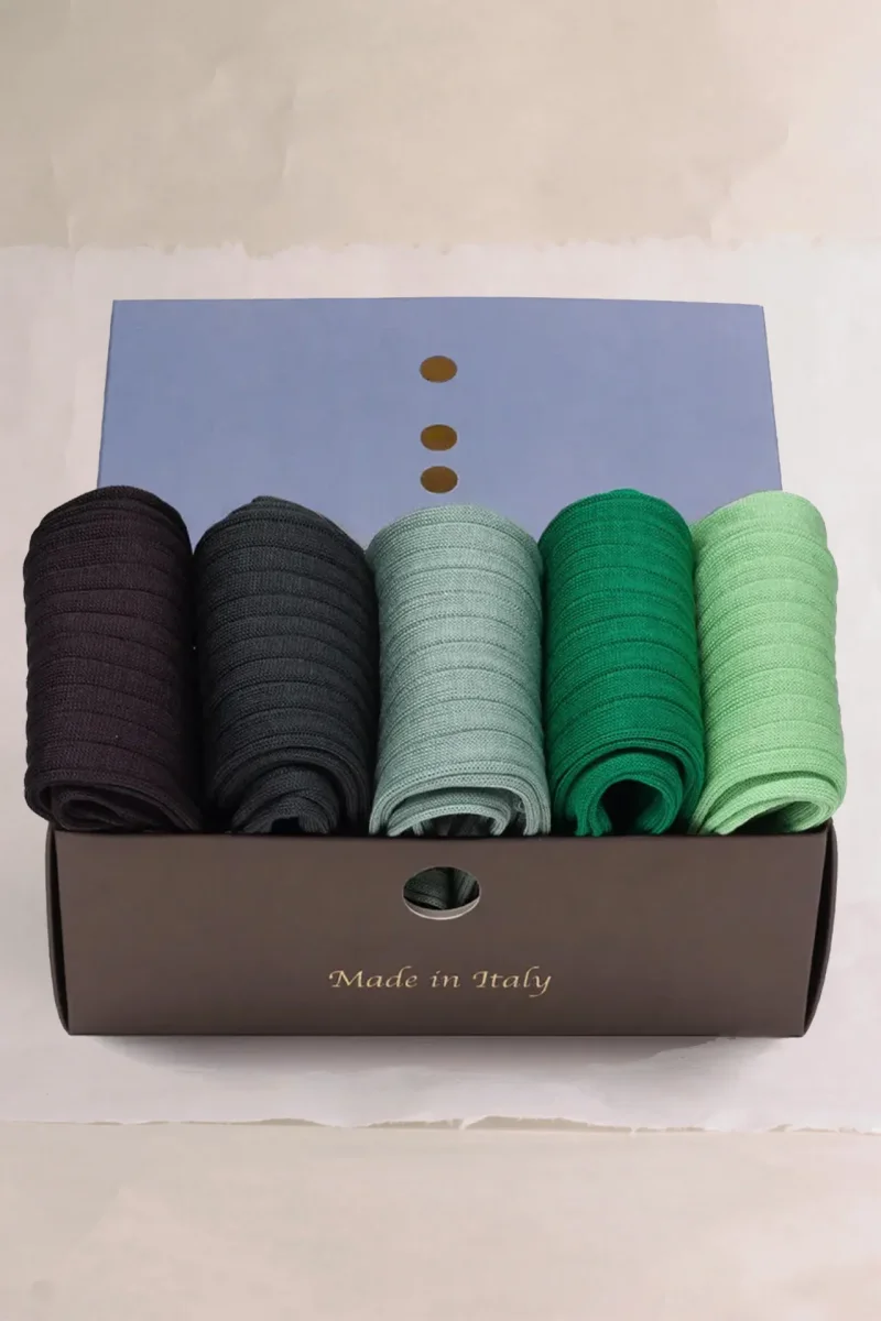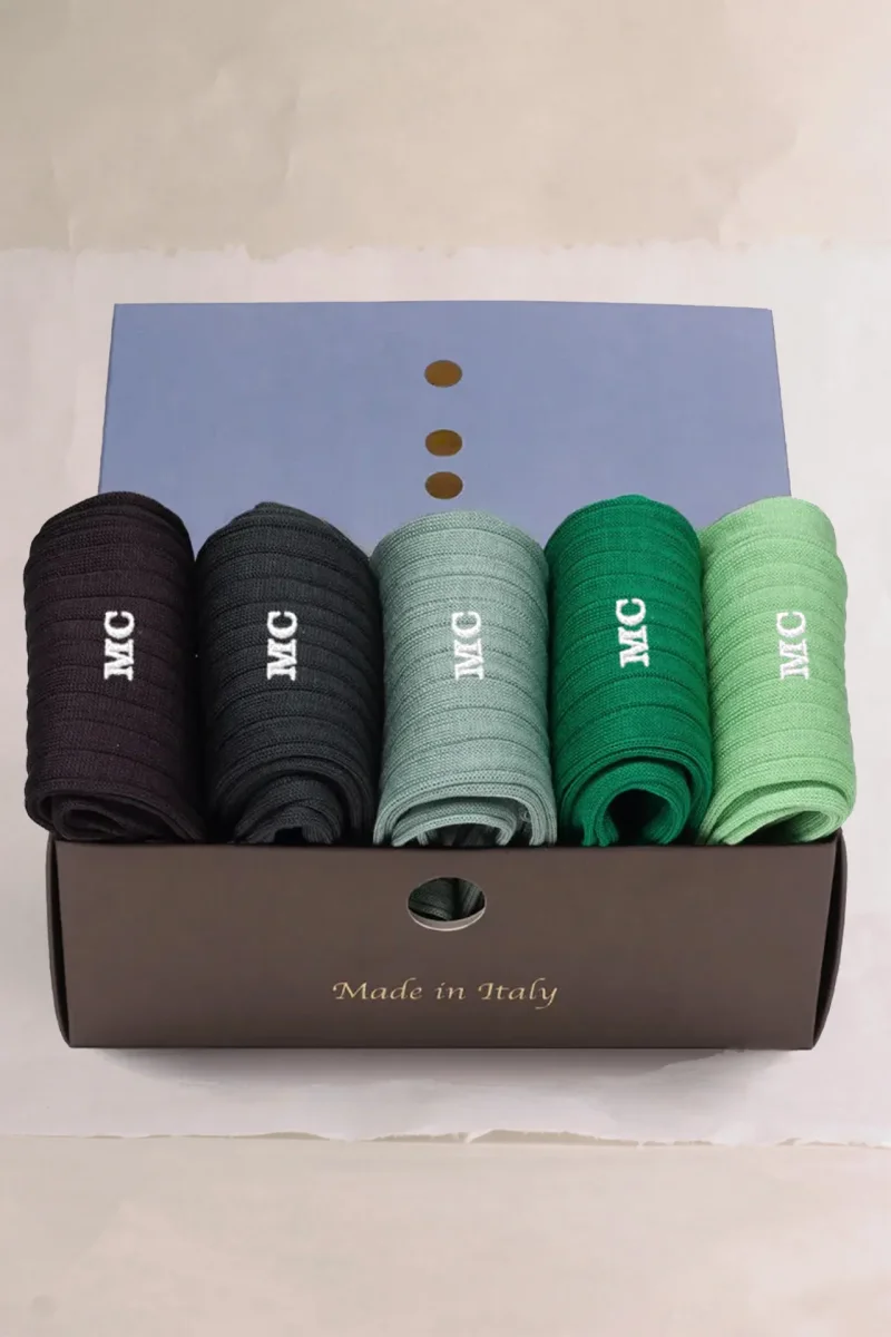 Box da N.5 Calze Lunghe in Filo di Scozia Sfumature di Verde a Costine con Iniziali o Senza!