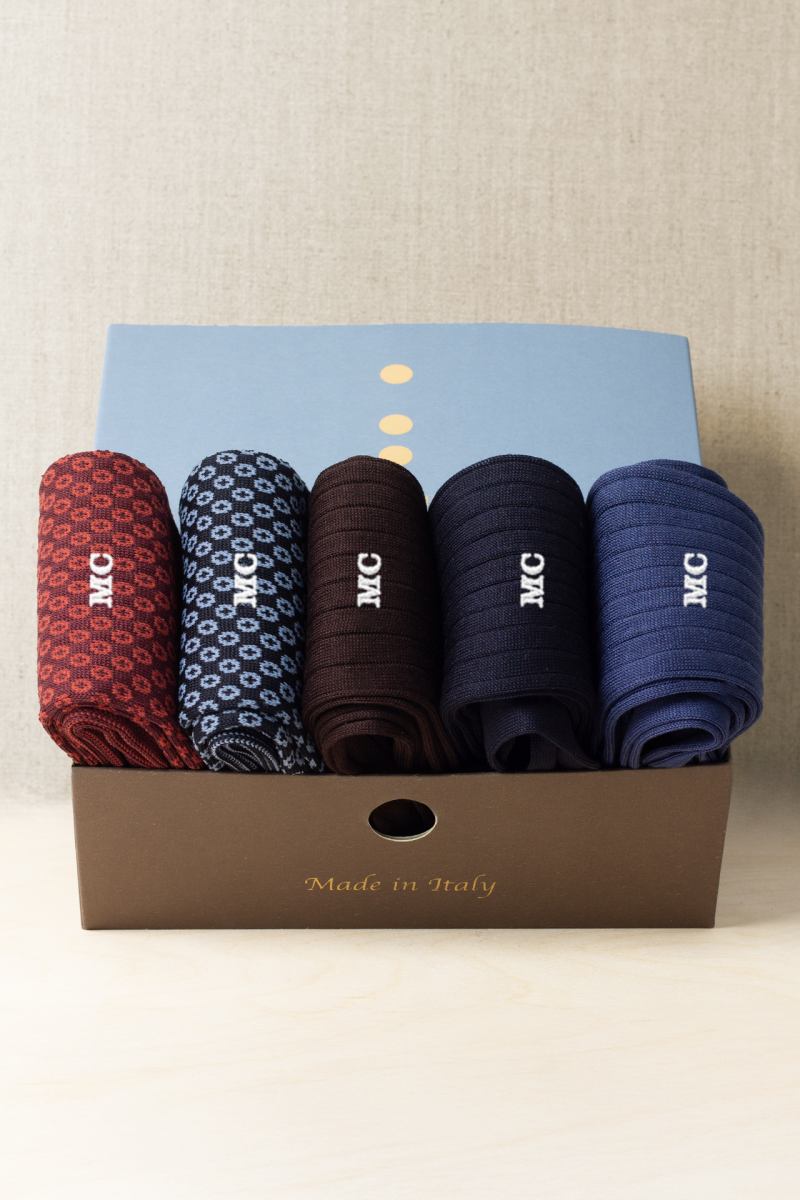 Box da N.5 Calze Lunghe in Puro Filo di Scozia Microbolle Jacquard con Iniziali o Senza!