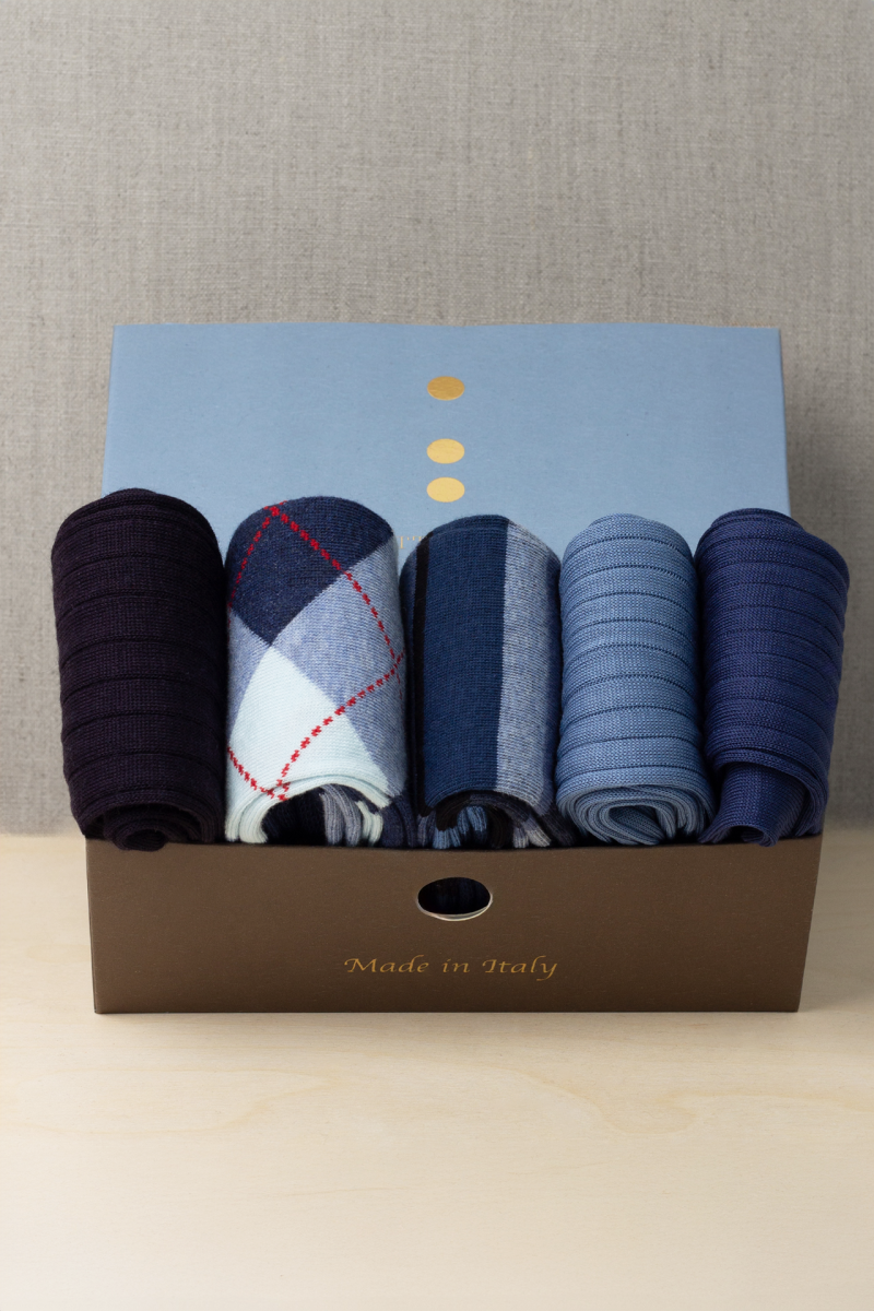Box da N.5 Calze Lunghe Mare Nobile in Caldo Cotone, Lana e Filo di Scozia con Iniziali o Senza!