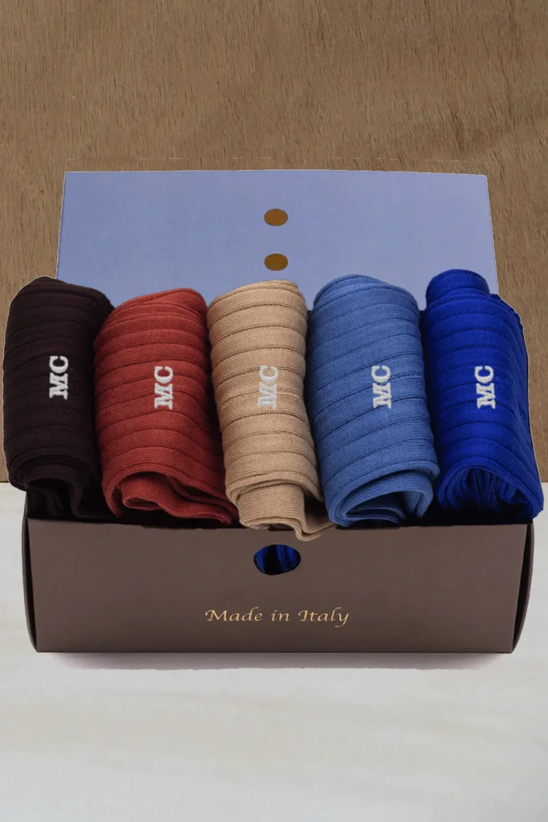 Per chi ama le Sfumature Classiche ed Eleganti questo Box composto da N. 5 Paia di Calze da Uomo in Puro Filo di Scozia, sarà perfetto. Non possono mancare nei vostri cassetti queste Calze adatte ad ogni Occasione.