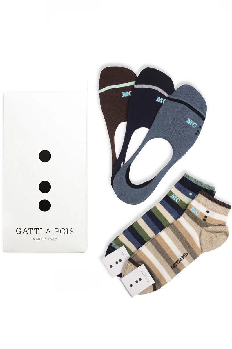 Box (5pz) Salvapiedi a RIGHE in Puro Filo di Scozia con con Iniziali o Senza!