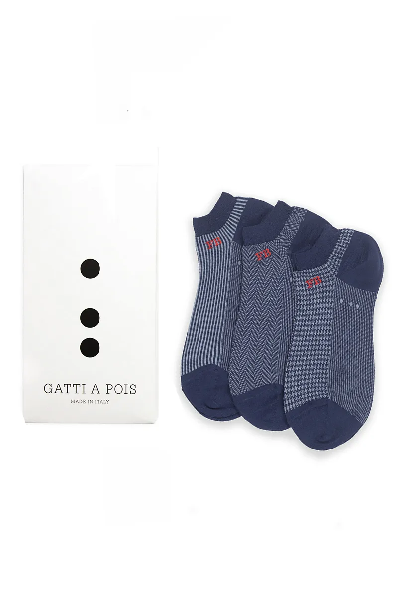 Box N.3 Fantasmini Blu Marine con Iniziali Ricamate