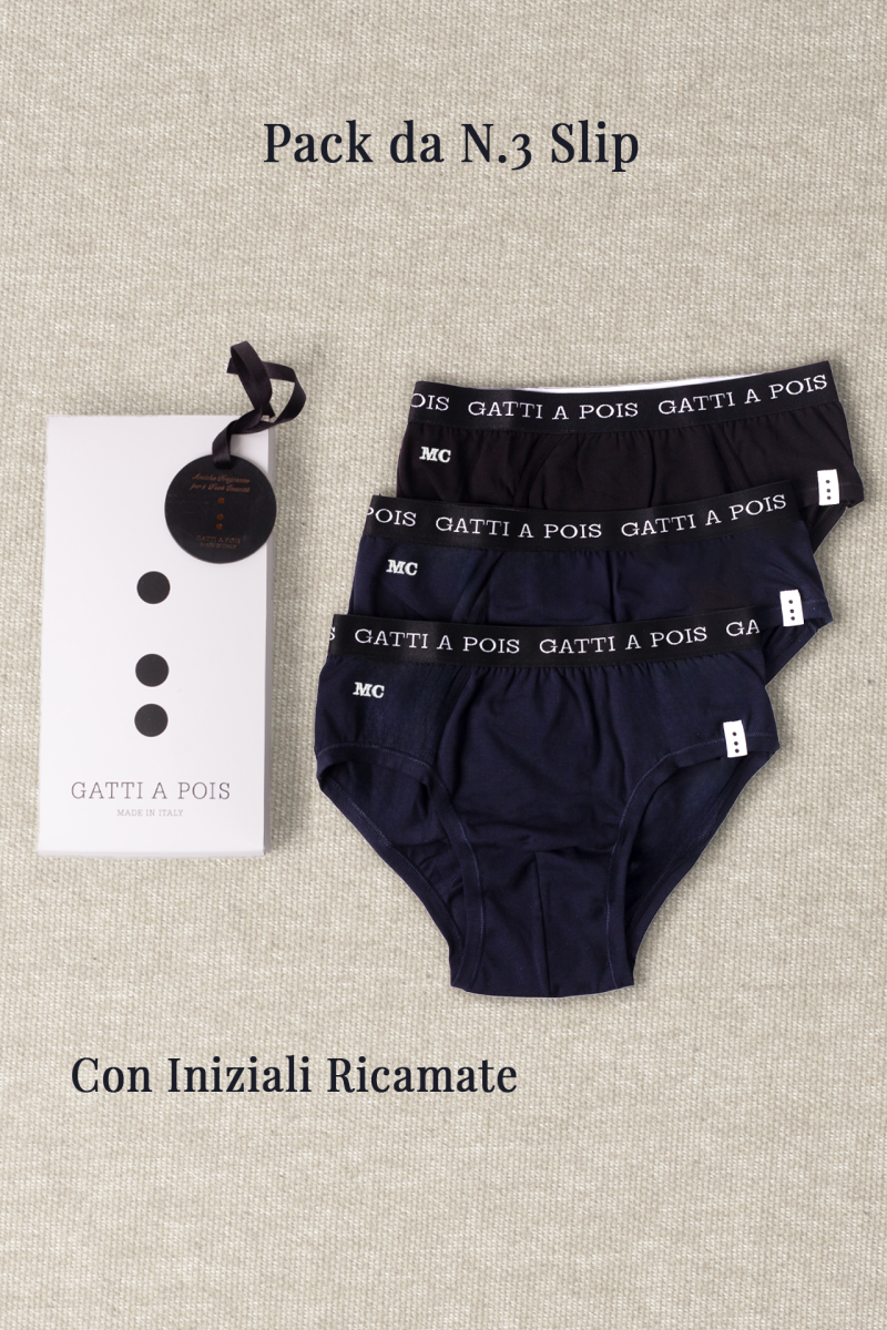 Linea Comfort Intimo di Gatti a Pois, classica e confortevole. Tre Slip di Cotone fino e di alta qualità realizzati con cura in ogni minimo dettaglio.Possibile personalizzarli con il Ricamo delle vostre Iniziali. Compresa nellaBox la Card profumata per cassetti.