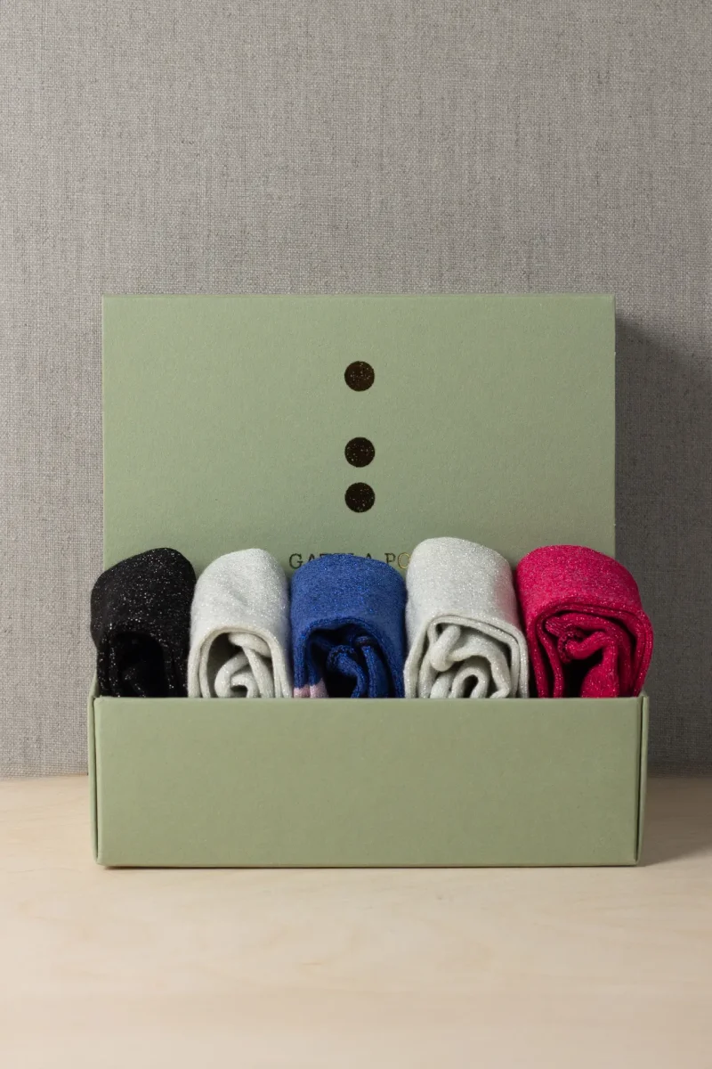 Box N.5 Calzini Cotone e Lamè Ecologico Shine Donna con Iniziali o Senza!