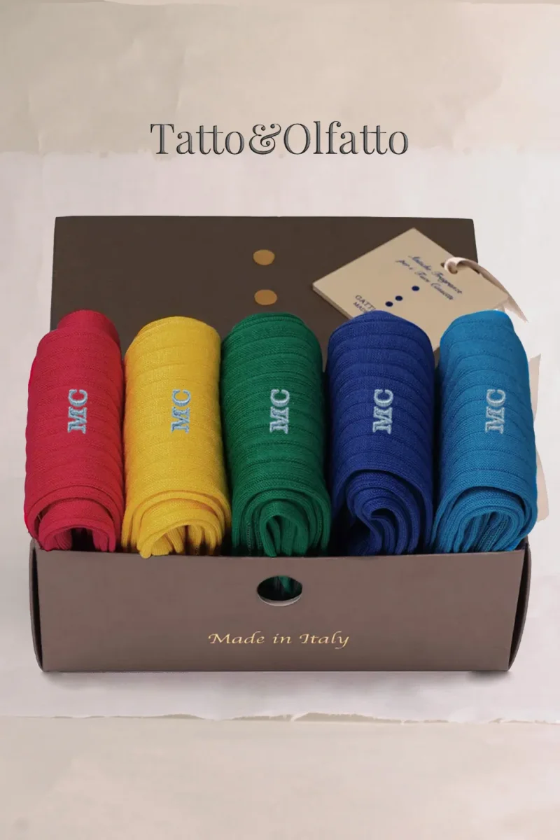 BoxLux da N.5 Calze Lunghe Colori Vivaci Filo di Scozia con Fragranza Floreale con Iniziali o Senza!
