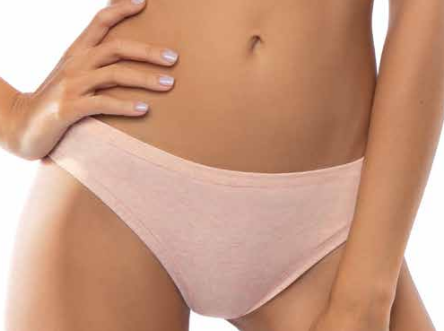 Brasiliana da donna taglio laser, cotone elasticizzato biologico al 100%. Linea Natural cotton. Composizione: CO95 EA5
