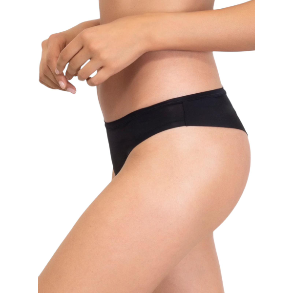 Brasiliano SièLei 1347 in microfibra morbidissima e semilucida. Cuciture invisibili e retro doppiato per un effetto liscio sotto gli abiti. Tassello 100% cotone.