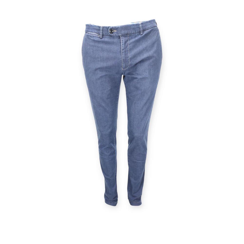 Pantalone modello Chino, Denim leggero, Interno pantaloni rifiniti nei minimi dettaglio con fodere in cotone e cinta antiscivolo per la camicia, cerniera antiscippo con cerniera dietro.