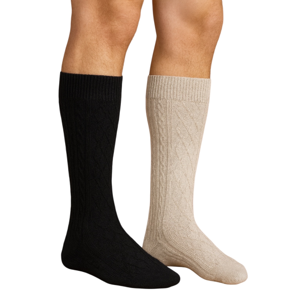 Il motivo intrecciato valorizza la gamba e aggiunge profondità visiva, rendendola perfetta da indossare con pantaloni, gonne o stivaletti.