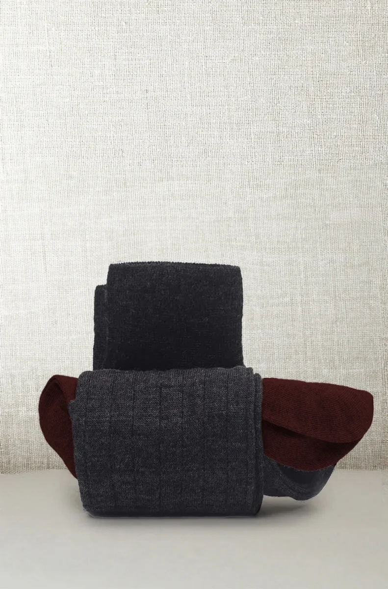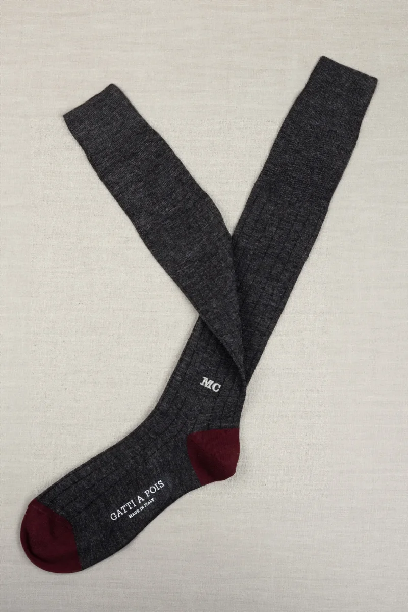 Calza in Morbida Lana Antracite&Bordeaux con Iniziali o Senza!
