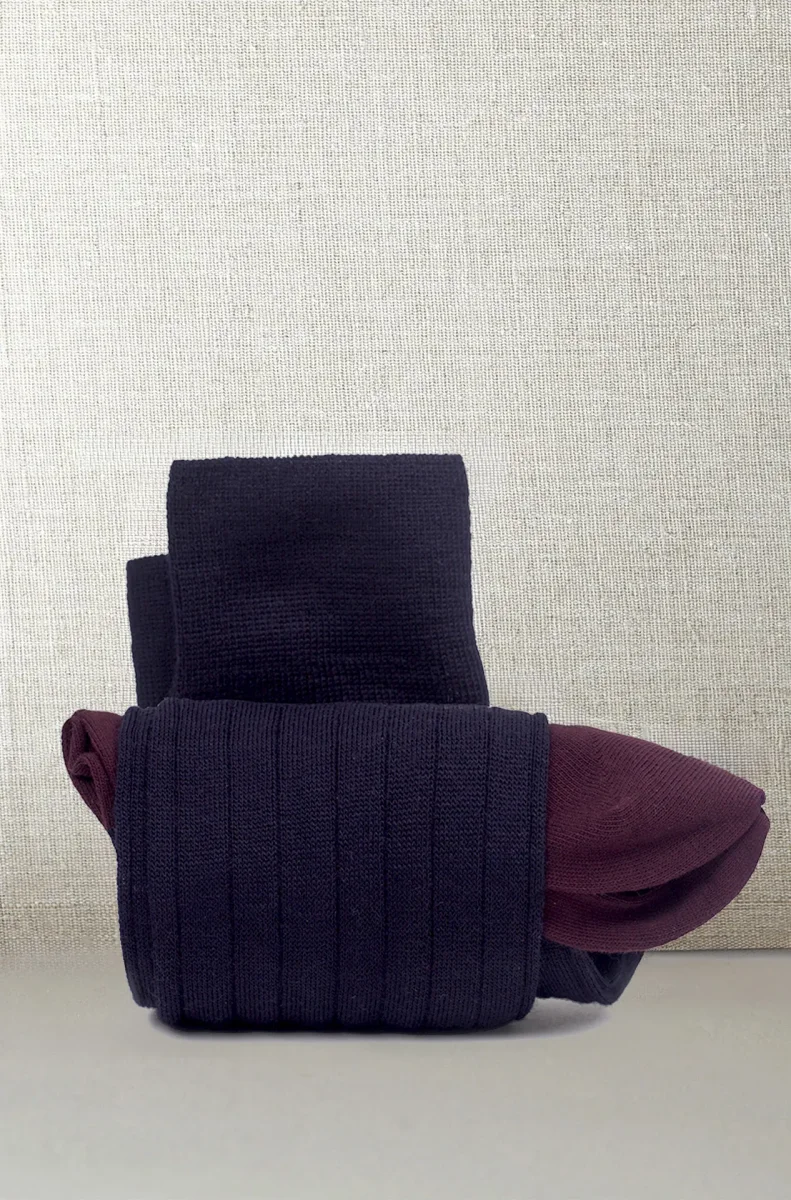 Calze in Lana CALDE ma allo stesso tempo fini, per non rinunciare all’Eleganza ma godere del calore della Lana morbidissima Made in Italy. Lavorazione a Costine e rimagliate a mano. Vestibilitร perfetta e ideale per i Gentlemen contemporanei. Personalizzabili con Iniziali.
