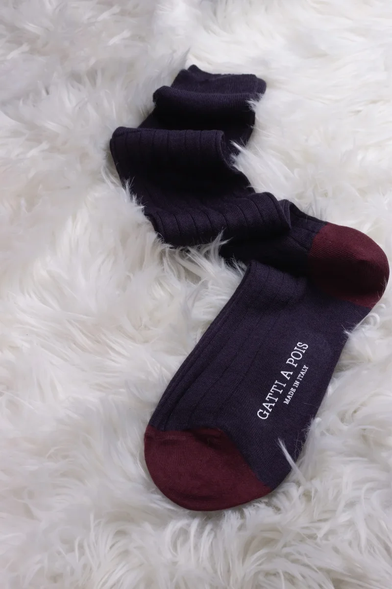 TIPOLOGIA: CALZA LUNGA STAGIONE: AUTUNNO/INVERNO MATERIALE: LANA FANTASIA: TINTA UNITA CON CONTRASTI COLORE: BLU NOTTE E BORDEAUX Calza da Uomo LUNGA raffinata e calda, lavorazione a Costine Classiche. Puoi decidere se far ricamare le tue Iniziali dalle nostre Sarte o acquistarle nella nella loro semplice bellezza. Le Calze in Lana sono Calze morbide e calde ma allo stesso tempo NON PESANTI e perfette per il lavoro dโufficio di tutti i giorni. Lavorazione Artigianale Made in Italy. Caratterizzano questa Calza, Morbidezza e Calzabilitร rare, Che contraddistingue il Nostro Marchio. Made in Italy dalla Creativitร del Disegno alla totale realizzazione del Prodotto.…