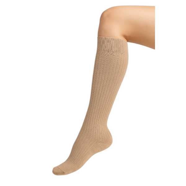 Il suo design a costine verticali dona un effetto raffinato e slanciato alla gamba, perfetto per completare con classe qualsiasi outfit. Grazie alla texture elasticizzata, questa calza garantisce stabilità senza comprimere, risultando ideale da indossare tutto il giorno.