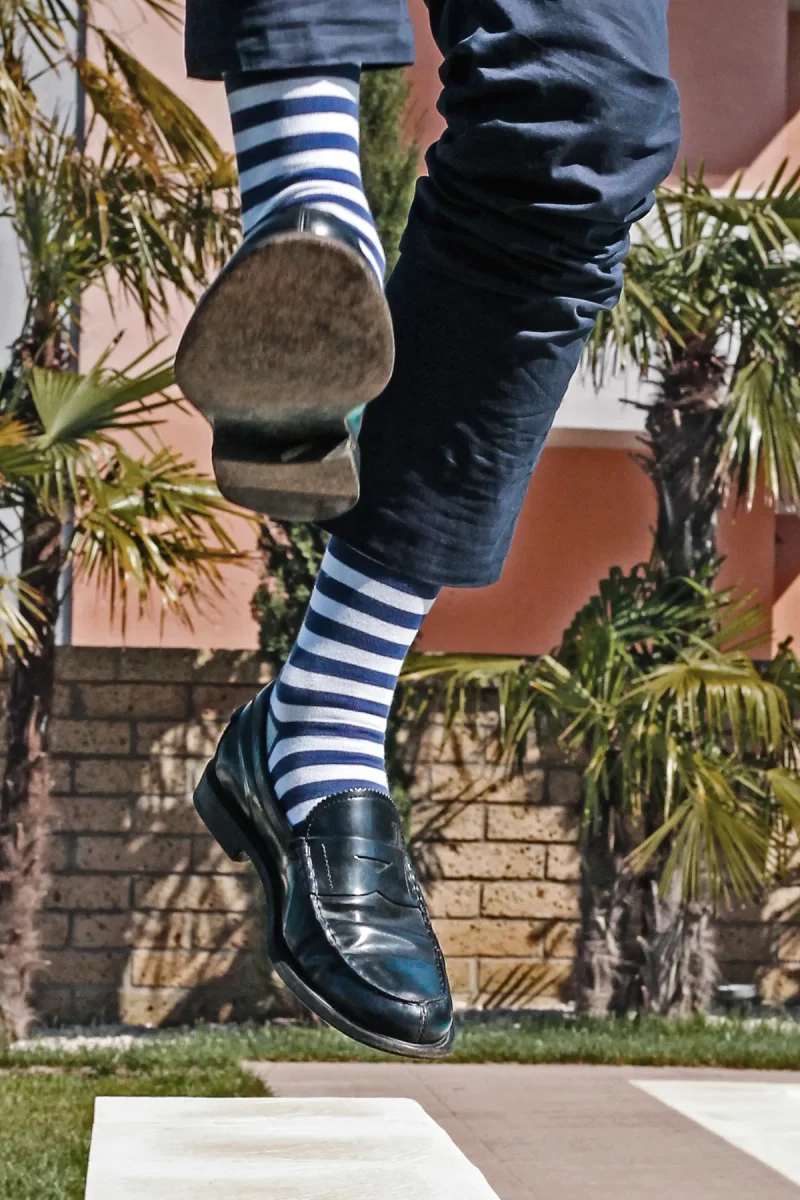 Calze a Righe realizzate su macchine tradizionali 200 aghi in Filo di Scozia. Totalmente Made in Italy e di alta Qualità e vestibilità. Sbizzarrisciti nella scelta dei Colori e decidi se Personalizzarle con le Iniziali!